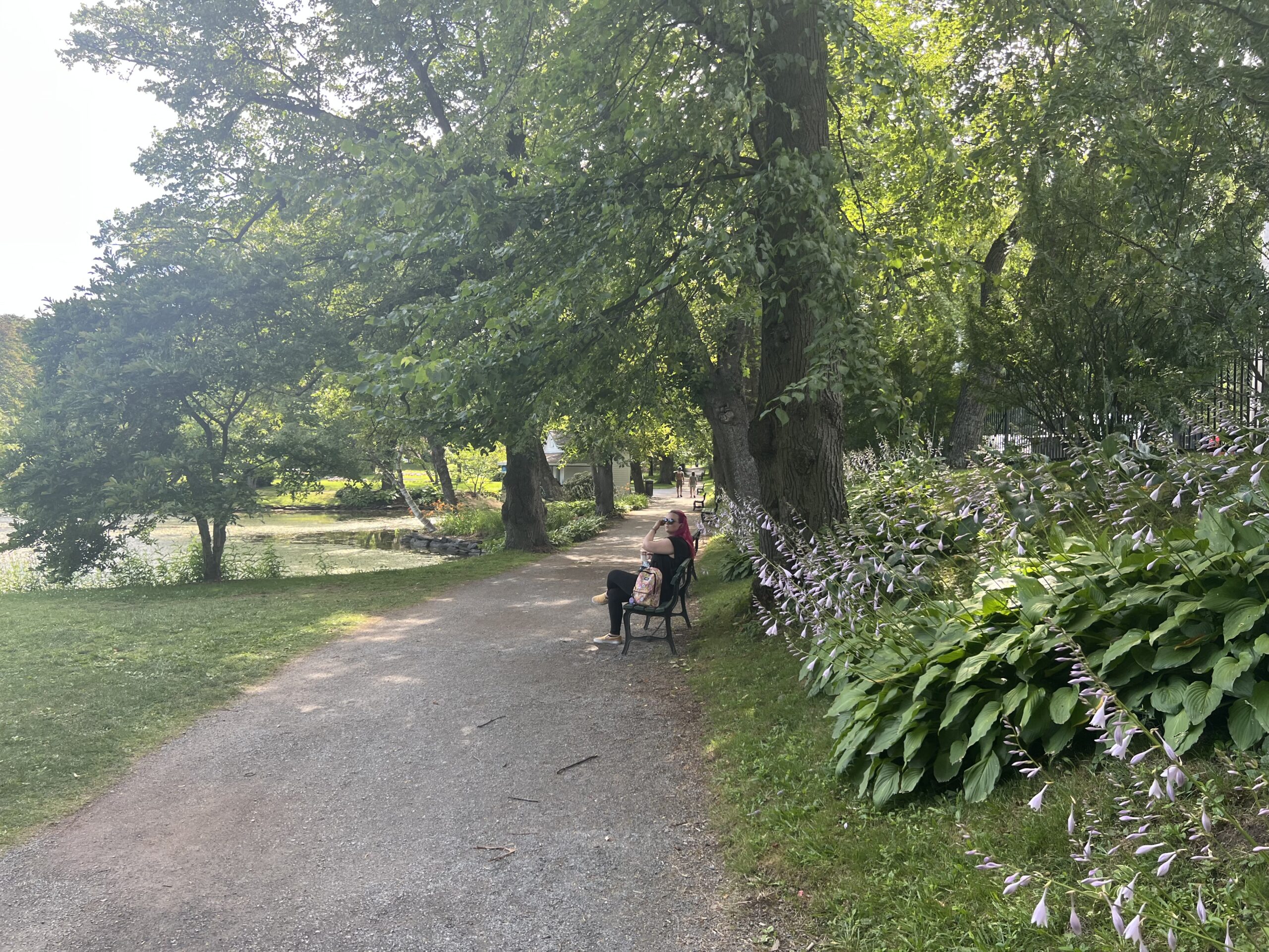 Someone had enquired about cycling over to Cavendish Beach, a provincial park near here but apparently it’s so crowded this time of year you can’t get near it. Likely going early in the a.m. would allow a visit, but we are off tomorrow for another site. Some of the group went to visit Anne of Green Gables interpretive site in the afternoon – have to say it leaves me completely cold but it’s apparently quite popular with the Japanese tourists. I did hear there were nice trails and a pretty garden at the back so I eventually went and was blessed by arriving after closing – able to walk the grounds and trails without crowds and avoided the interpretive centre.